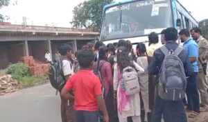 ಶಕ್ತಿ ಯೋಜನೆ ಎಫೆಕ್ಟ್, ಕೂರಲಲ್ಲ ನಿಲ್ಲಲೂ ಜಾಗವಿಲ್ಲದೆ ಬಸ್ ಇಳಿದು ಬಸ್ ಮುಂದೆಯೇ ಕುಳಿತು ವಿದ್ಯಾರ್ಥಿಗಳು ಪ್ರತಿಭಟಿಸಿದರು.
