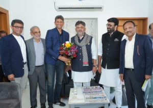 ಬೆಳಗಾವಿ (ಸಮರ್ಥ ನಾಡು): ಕರ್ನಾಟಕ ರಾಜ್ಯ ಕ್ರಿಕೆಟ್ ಅಸೋಸಿಯೇಷನ್ ಗೆ ನೂತನ ಅಧ್ಯಕ್ಷರಾಗಿ ಆಯ್ಕೆಯಾಗಿರುವ ಖ್ಯಾತ ಕ್ರಿಕೆಟಿಗ ವೆಂಕಟೇಶ್ ಪ್ರಸಾದ್ ಅವರು ಸಿಎಂ ಸಿದ್ದರಾಮಯ್ಯ, ಡಿಸಿಎಂ ಡಿ ಕೆ ಶಿವಕುಮಾರ್ ಅವರನ್ನು ಬೆಳಗಾವಿಯ ಸರ್ಕಿಟ್ ಹೌಸ್ ನಲ್ಲಿ ಬುಧವಾರ ಭೇಟಿಯಾಗಿ ಸಮಾಲೋಚನೆ ನಡೆಸಿದರು.